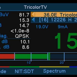 - Максимально информативная индикация RSSI, C/N, LM, MER, СBER, PE