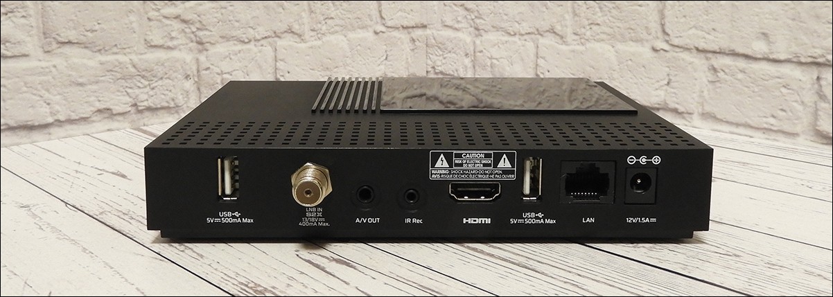 У приставки имеется два USB порта и выносной ИК приемник, позволяющий поместить ресивер за панелью телевизора.