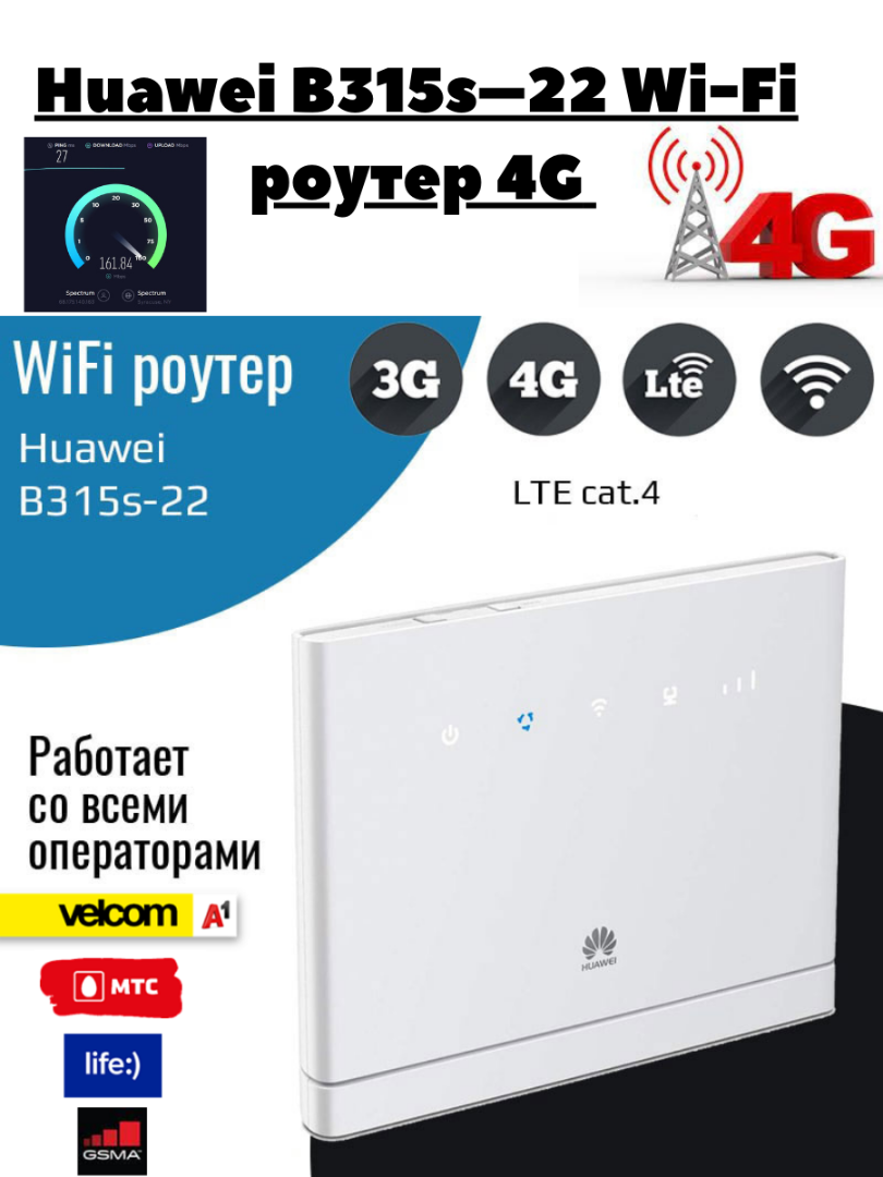 Huawei B315s-22 - новый маршрутизатор LTE для стационарного использования с привлекательным дизайном и современными интерфейсами. В обиходе у устройства есть очень хороший прием с хорошей зоной покрытия. Если Вы хотите получить маршрутизатор с более высокой скоростью связи, то маршрутизатор Huawei E5186 4G может стать хорошим выбором.