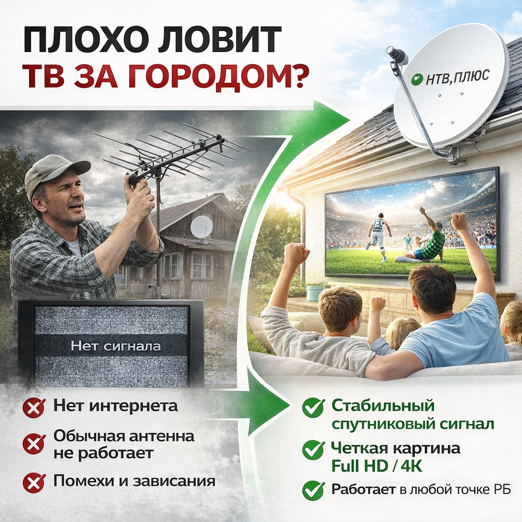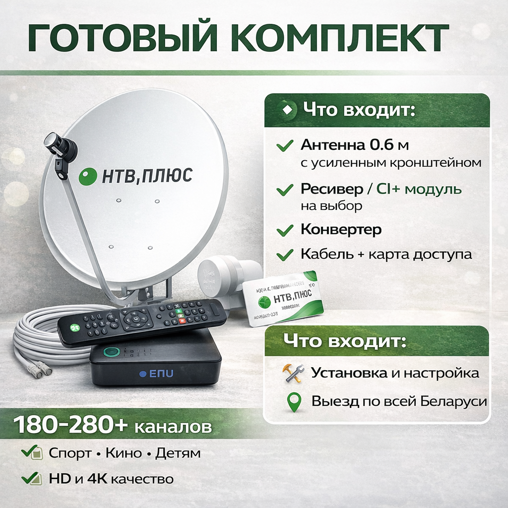 Забудьте о плохом приеме ТВ за городом! Предлагаем готовое решение для стабильного просмотра любимых каналов в любой точке Беларуси. Спутниковый комплект НТВ-Плюс — это идеальный выбор для дачи, где обычная антенна не ловит, а мобильный интернет работает нестабильно.