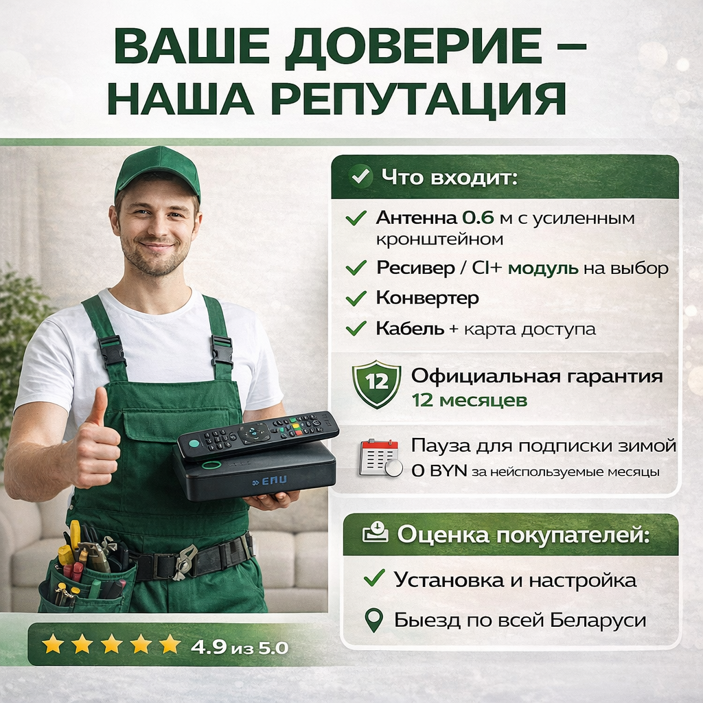 • Сигнал без интернета: Спутниковая тарелка обеспечивает кристально чистую картинку даже в удаленных СТ и деревнях Минской области.