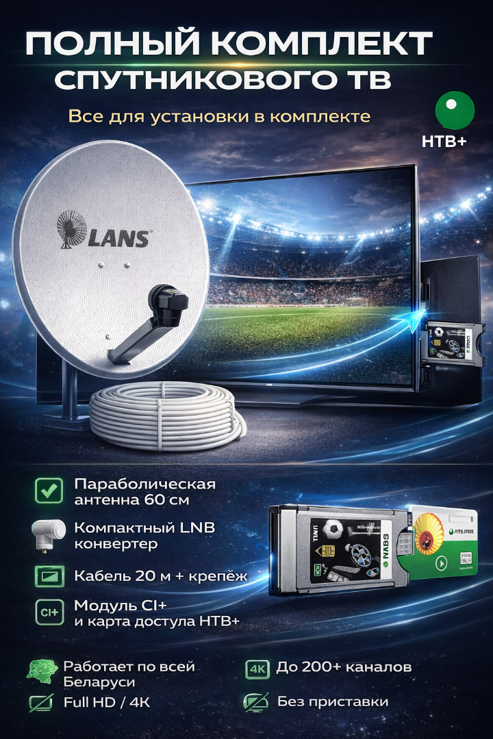 Идеальное решение для современных 4K Ultra HD телевизоров! Комплект с CI+ модулем позволяет смотреть более 200 каналов НТВ-Плюс без лишних проводов и дополнительного пульта. Управление всеми функциями происходит напрямую через ваш телевизор.