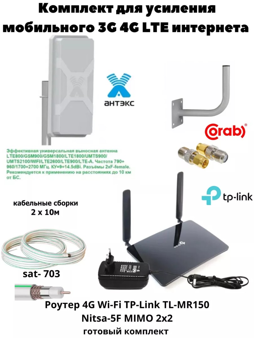 Комплект 3G/4G интернета для дачи и загородного дома – TP-Link MR150 + антенна MIMO